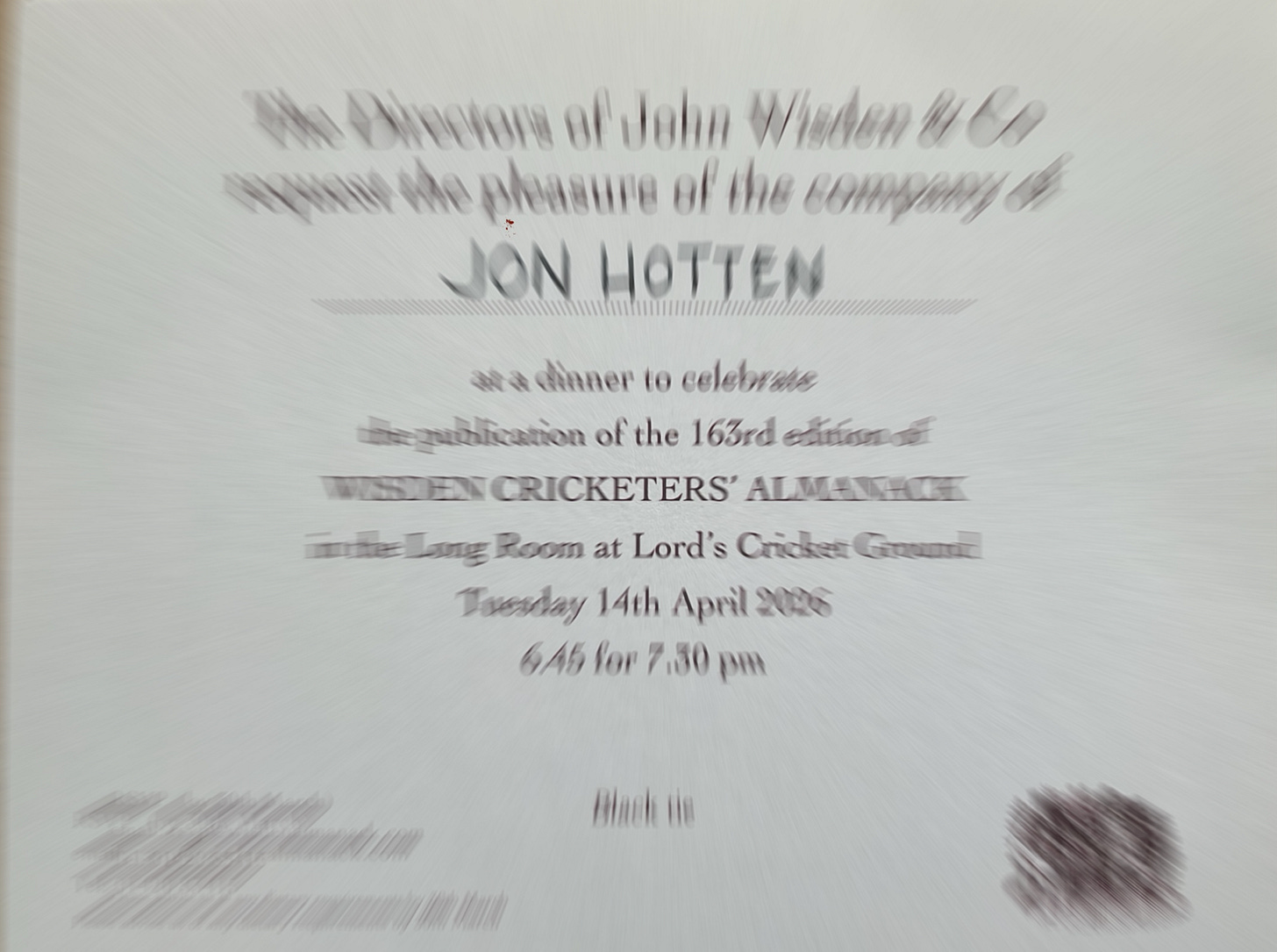 I'm not sure how many times I’ve been, but it’s a few now. If you’re fortunate enough to have made a contribution to the book, a reassuringly thick invitation lands on the doormat soon after Christmas and you’re de-mothing the dinner jacket once again. The first time I went, more than a decade ago, the event was a sort of curtain raiser to the season, a glimpse of the hallowed turf while the evening light was still milky, but to take place before the first deliveries are sent down now it would have to happen some time in early February, and I’m pretty sure the Almanack isn’t even finished by then.
